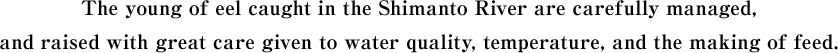 At Shimanto Eel Co. Ltd., we endeavor to bring our customers safe and delicious Shimanto eel through our carefully managed production process.